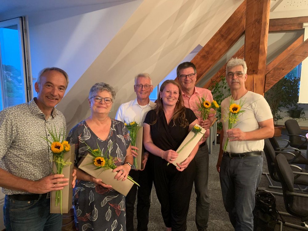 Im Anschluss an die Verabschiedung der alten Gemeinderäte wurden die neuen Grünen-Ratsmitglieder Marc Genter, Rebecca Opluschtil (war bereits in der letzten Legislaturperiode Gemeinderätin) und Gabriele Weyerhäuser (leider am Tag der Sitzung persönlich verhindert) herzlich begrüßt. Sie treten in große Fußstapfen, haben jedoch die besten Voraussetzungen, um die erfolgreiche Arbeit ihrer Vorgänger fortzuführen und neue Impulse zu setzen.