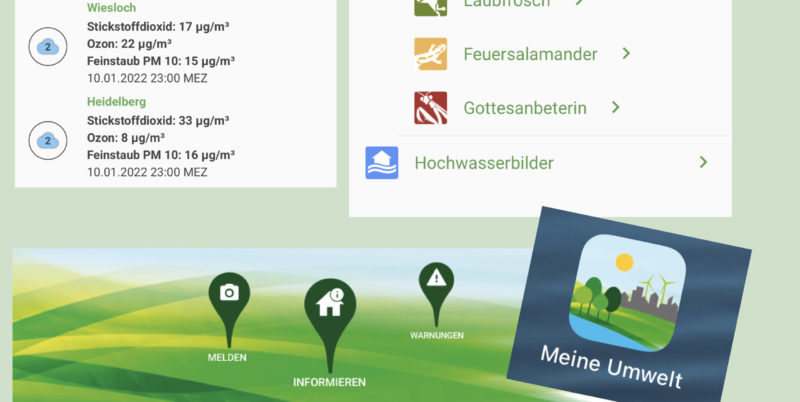 Die vom Umweltminsterium Baden-Württemberg entwickelte App „Meine Umwelt“ bietet schon seit längerem regional bezogene Messwerte zur Luftqualität, Pegelständen von Flüssen sowie weiteren Umweltdaten aus den Themenbereichen Hochwasser, Verkehr und Energie.